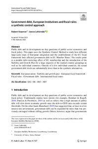 <p>Public debt and its development are key questions of public sector economics and fiscal policy. This paper uses the Synthetic Control Method to study how different large-scale steps of European integration and the ... -