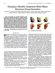 We introduce the sequential multi-object robotic grasp sampling algorithm SeqGrasp that can robustly synthesize stable grasps on diverse objects using the robotic hand’s partial Degrees of Freedom (DoF). We use SeqGrasp ... -