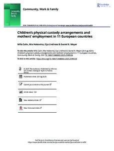 As joint physical custody (JPC) of children after parental separation has become more prevalent across countries, we need to know more about its impacts. This study examines whether JPC is associated with mother's paid ... -