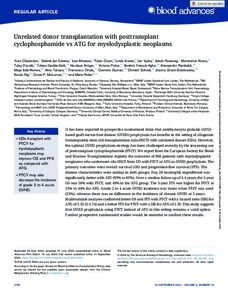 Unrelated donor transplantation with posttransplant cyclophosphamide vs ATG for myelodysplastic neoplasms