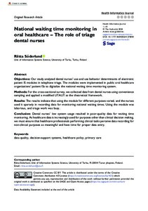 National waiting time monitoring in oral healthcare - The role of triage dental nurses