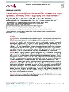 Stenosis degree and plaque burden differ between the major epicardial coronary arteries supplying ischemic territories