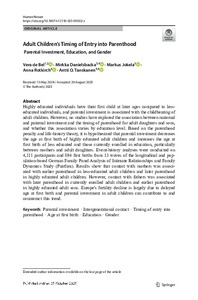 Adult Children’s Timing of Entry into Parenthood
