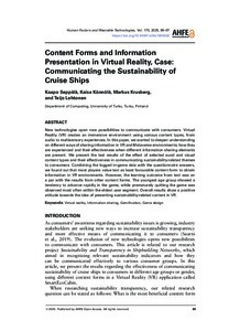 Content Forms and Information Presentation in Virtual Reality - Case: Communicating the Sustainability of Cruise Ships