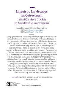 <p>This paper examines urban linguistic landscapes in two Baltic Sea cities, Greifswald in Germany and Turku in Finland. The focus is on transgressive stickers that appear on rubbish bins, lampposts, traffic signs, etc. ... -
