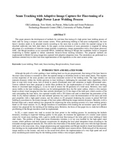 <p> This paper presents the development of methods for real-time fine-tuning of a high power laser welding process of thick steel by using a compact smart camera system. When performing welding in butt-joint configuration, ...