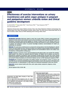 Effectiveness of exercise interventions on urinary incontinence and pelvic organ prolapse in pregnant and postpartum women: Umbrella review and clinical guideline development