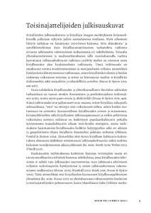 <p> Kirjailijoiden julkisuuskuvista ja kirjailijan imagon merkityksestä kirjamarkkinoilla puhutaan nykyisin paljon suomalaisessa mediassa. Myös aiheeseen liittyvä tutkimus on lisääntynyt 2000-luvun kuluessa. Kuuluisuuden ... -
