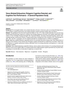 <p>Background<br></p><p>We investigated whether stress-related exhaustion (chronic or short-term, and co-occurring with depression or not) is related to cognitive performance and whether polygenic cognitive potential ... -