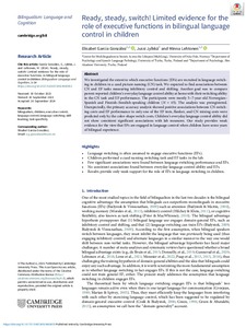 <p>We investigated the extent to which executive functions (EFs) are recruited in language switching in children in a cued picture-naming (CN) task. We expected to find associations between CN and EF tasks measuring ... -