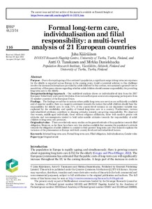 Formal long-term care, individualisation and filial responsibility : a multi-level analysis of 21 European countries