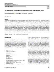 <p>The purpose of this qualitative case study comprising 18 thematic interviews was to explore social learning and provide an internal focus on the development path of an international company coping in a crisis. EC is an ... -