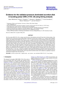 The X-ray pulsar GRO J1744-28 is a unique source that shows both pulsations and type-II X-ray bursts, allowing studies of the interaction of the accretion disk with the magnetosphere at huge mass-accretion rates exceeding ... -