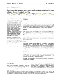 Exercise training alters lipoprotein particles independent of brown adipose tissue metabolic activity