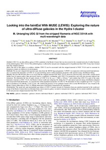 <p>Context. UDG 32 is an ultra-diffuse galaxy (UDG) candidate in the Hydra I cluster that was discovered in the extended network of stellar filaments of the jellyfish galaxy NGC 3314A. This jellyfish galaxy is affected by ... -