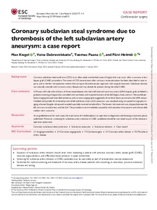 Coronary subclavian steal syndrome due to thrombosis of the left subclavian artery aneurysm: a case report