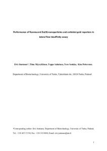 Performance of fluorescent europium(III) nanoparticles and colloidal gold reporters in lateral flow bioaffinity assay