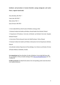 Migrants appear to have a higher risk of mental disorders, but findings vary across country settings and migrant groups. We aimed to assess incidence and prevalence of mental disorders among immigrants and Finnish-born ... -