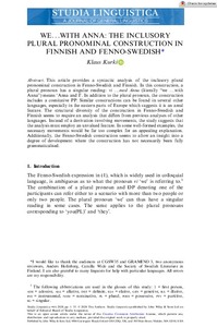 We ...with Anna: the Inclusory Plural Pronominal Construction in Finnish and Fenno-Swedish