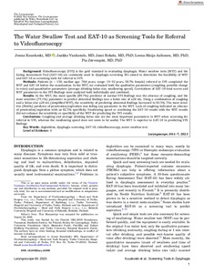 The Water Swallow Test and EAT-10 as Screening Tools for Referral to Videofluoroscopy