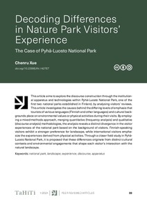<p>This article aims to explore the discourse construction through the institutional apparatus and technologies within Pyhä-Luosto National Park, one of the first two national parks established in Finland, by analysing ... -