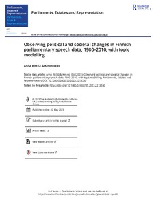 Observing political and societal changes in Finnish parliamentary speech data, 1980–2010, with topic modelling