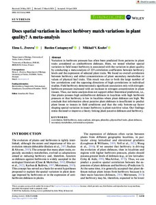 Does spatial variation in insect herbivory match variations in plant quality? A meta-analysis