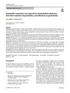Psychedelic researchers’ own experiences of psychedelic substances, their link to opinions of psychedelics, and reflections on positionality