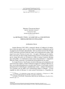 La retraduction : le sort de la conception bermanienne en Finlande