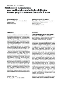 <p>Suomessa hoivakotien henkilöstö on velvoitettu toimimaan asukkaan läheisten kanssa yhteistyössä hoidon järjestämiseksi. Toimivan vuorovaikutuksen ja yhteistyön tiedetään parantavan asukkaan hoidon yksilöllisyyttä ja ... -