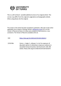 Pre-exposure of abundant species to disturbance improves resilience in microbial metacommunities