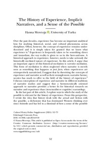<p>This article argues that the history of experience needs to take seriously the narrative mediation of experience, which is an important aspect of the historically mediated nature of experience, and that cultural narratives ... -
