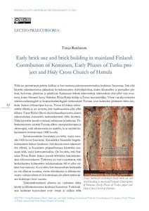 [lectio praecursoria]. Early brick use and brick building in mainland Finland: Contribution of Koroinen, Early Phases of Turku pro-ject and Holy Cross Church of Hattula