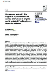 Humans or animals? The linguistic representation of animal characters in original and translated Finnish picture books for children