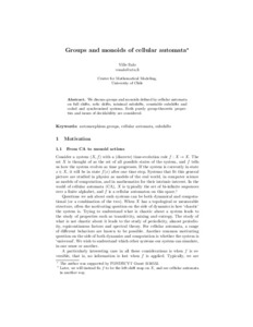 Lecture Notes in Computer ScienceWe discuss groups and monoids defined by cellular automata on full shifts, sofic shifts, minimal subshifts, countable subshifts and coded and synchronized systems. Both purely group-theoretic properties and issues of ... -