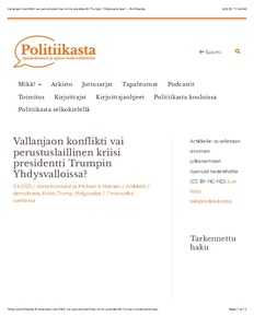 <p>Kysymykset vallanjaosta ja presidentin toimivallasta nousivat julkiseen keskusteluun jo Donald Trumpin ensimmäisellä presidenttikaudella. Trumpin pyrkimykset haastaa vallanjaon reunaehtoja ovat merkittäviä, mutta ... -