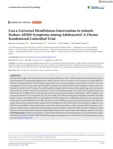 Can a Universal Mindfulness Intervention in Schools Reduce ADHD Symptoms among Adolescents? A Cluster Randomized Controlled Trial