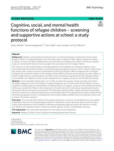 Cognitive, social, and mental health functions of refugee children - screening and supportive actions at school : a study protocol