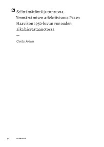 Selittämätöntä ja tuntuvaa. Ymmärtämisen affektiivisuus Paavo Haavikon 1950-luvun runouden aikalaisvastaanotossa