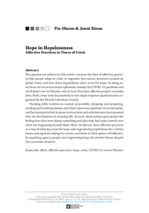 Hope in Hopelessness. Affective Practices in Times of Crisis