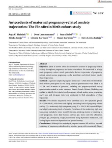 <p>Objective: Little is known about the normative courses of pregnancy-related anxiety throughout pregnancy and their antecedents. We examined in a large scale pregnancy cohort which potentially distinct trajectories of ... -