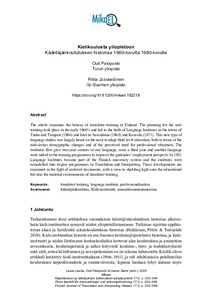 <p>The article examines the history of translator training in Finland. The planning for the new training took place in the early 1960’s and led to the birth of Language Institutes in the towns of Turku and Tampere (1966) ... -