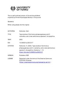 Type studies of Cortinarius phaeopygmaeus and C. rusticellus, and a new salicticolous species C. chrysophilus