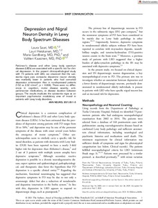 Parkinson's disease and other Lewy body spectrum diseases (LBDs) are associated with a specific risk for clinical depression. In the present clinicopathological study with 73 patients with LBD, we observed that the substantia ... -
