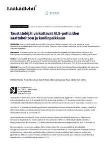 <p><b>Lähtökohdat: </b>Amyotrofinen lateraaliskleroosi (ALS) on harvinainen liikehermosairaus, johon ei ole parantavaa hoitoa. Keskimääräinen elinaika diagnoosista on noin 2–4 vuotta. Tutkimme, missä potilaiden saattohoito ... -