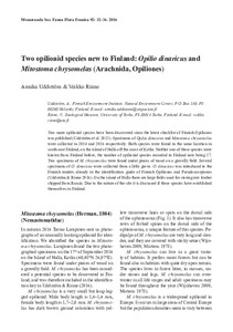 Two more opilionid species have been discovered since the latest checklist of Finnish Opiliones was published (Uddström et al. 2013). Specimens of <em>Opilio dinaricus</em> and <em>Mitostoma chrysomelas</em> were collected ... -