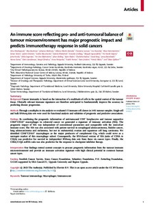 An immune score reflecting pro- and anti-tumoural balance of tumour microenvironment has major prognostic impact and predicts immunotherapy response in solid cancers