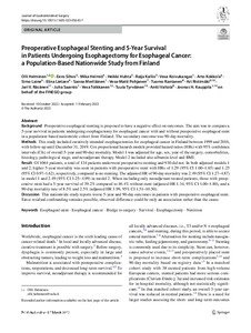 Preoperative Esophageal Stenting and 5-Year Survival in Patients Undergoing Esophagectomy for Esophageal Cancer: a Population-Based Nationwide Study from Finland