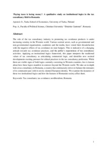 ‘Paying taxes is losing money’: A qualitative study on institutional logics in the tax consultancy field in Romania