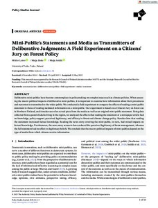 Mini‐Public's Statements and Media as Transmitters of Deliberative Judgments: A Field Experiment on a Citizens' Jury on Forest Policy